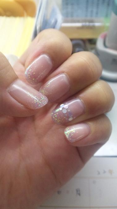 100720_143757.jpg名づけて、『夏の恋は虹色に輝くネイル』松本はん月9主演記念でこんなネイルにしてみました。クリアベースにerikonailのブルーラメパウダーをグラデーションにしてもらって、両薬指に中サイズのホログラムをベースとグラデーションの間にランダムに配置してもらいました。これまた可愛い。光に当たると、ラメパウダーがキラキラ7色に光って。本当に夏虹ネイルです。
